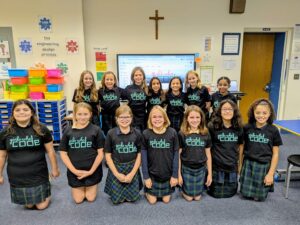 Our “Girls Who Code” club for SJS 5th grade girls meets every other Monday at lunchtime in the Innovation Lab. Under the guidance of STREAM teacher Mrs. Poth, the group works on a set curriculum designed to elevate coding skills, build camaraderie, and educate about careers in technology. Mrs. Poth also hosts an optional “Log In to Lunch” group for the 5th grade boys.