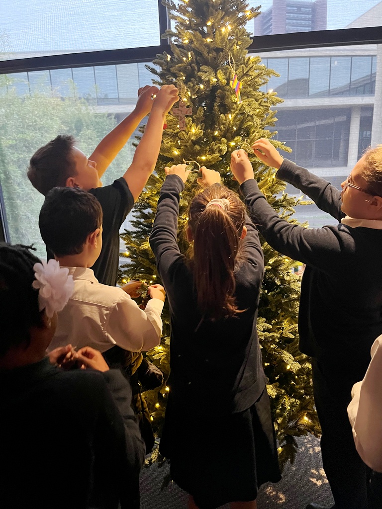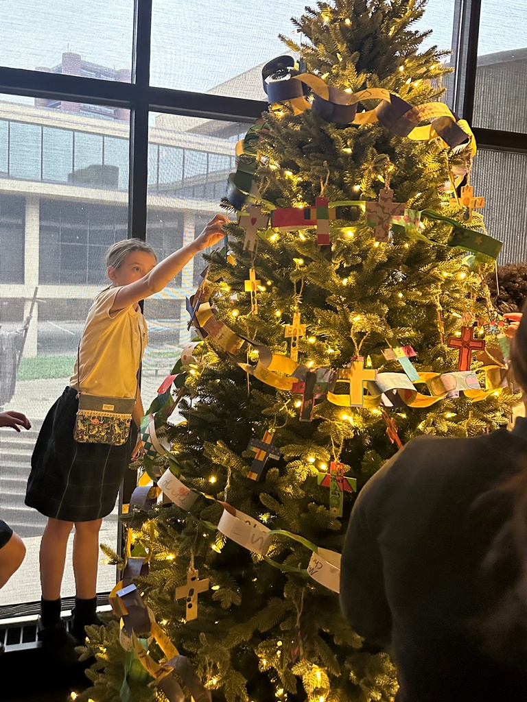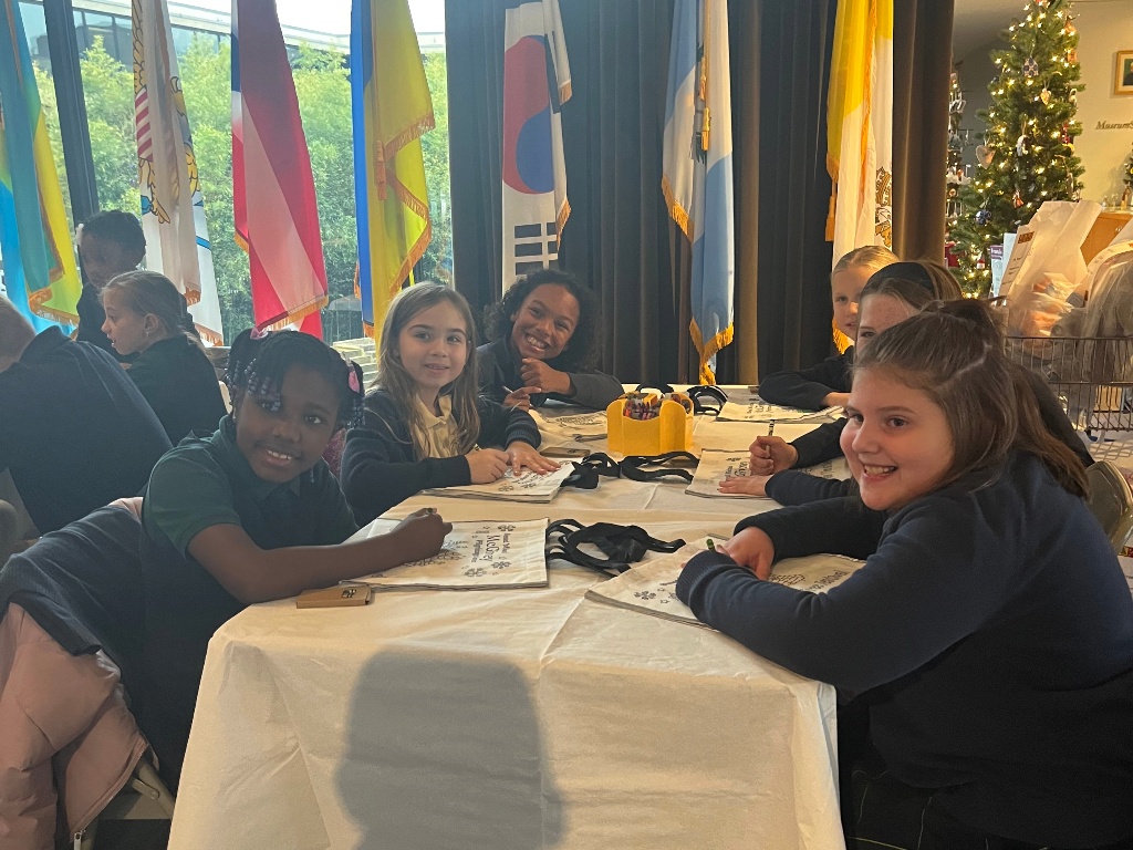 On Friday, a small group of 3rd – 5th grade students from both of our parish schools traveled to the Blessed Michael McGivney Pilgrimage Center in New Haven to decorate trees for their Christmas Tree Festival exhibit. Using ornaments and a paper chain created by students after school on November 12th – Saint James School students decorated a tree to represent our school, while students from Saint Bridget School decorated a second tree for their school.